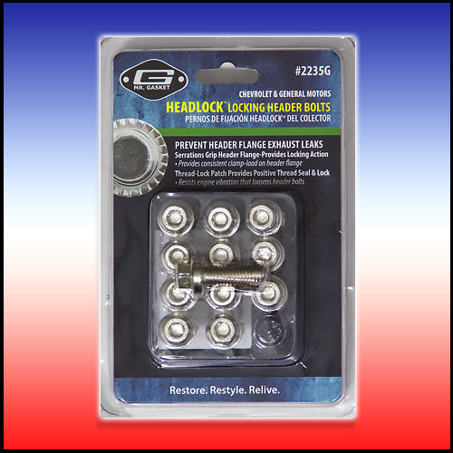 Header Bolt, Locking, 8 mm x 1.25 Thread, 25 mm Long, Hex Head, Stainless, GM LS-Series, Set of 12