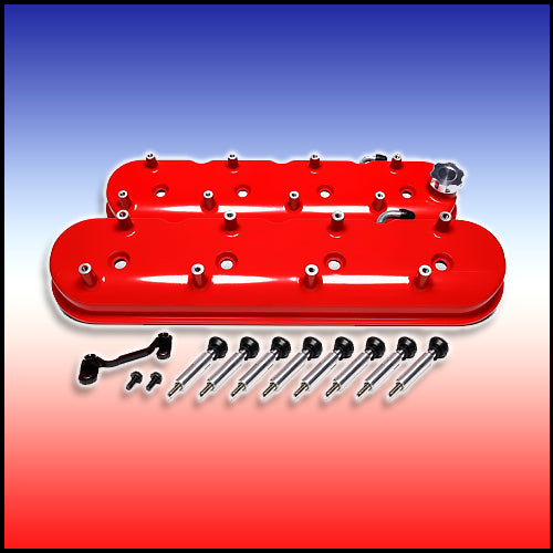 Valve Cover, Tall, Baffled, Coil Mounting Bosses, Aluminum, Red Powder Coat, GM LS-Series, Kit