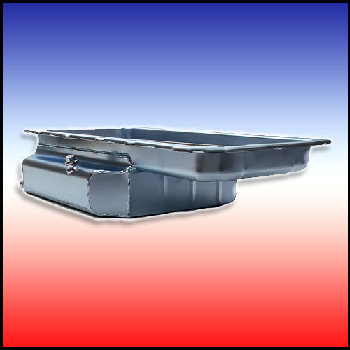 Engine Oil Pan, Oval Track, Rear Sump, 6 qt, 4-1/2 in Deep, Steel, Zinc Plated, GM LS-Series, Each